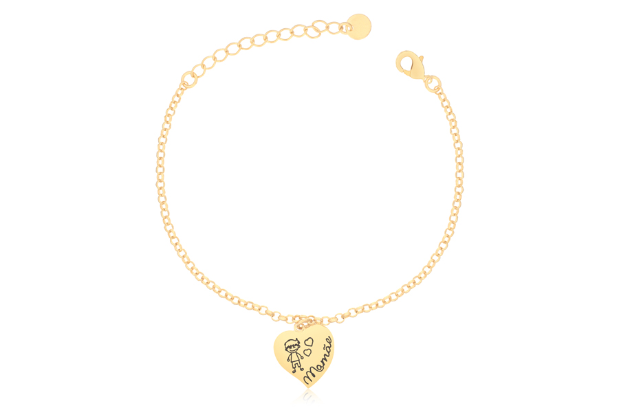 PULSEIRA INFANTIL BANHADA EM OURO, ELO 1,10mm COM BOLINHA, 14cm COMPRIMENTO, PONTO DE LUZ 3,50mm, AMOR DO PAPAI 10mm COM CORAÇÃO