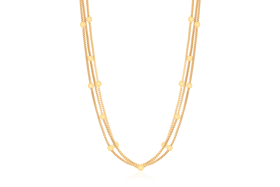 GARGANTILHA BANHADA EM OURO, ELO PORTUGUÊS 3mm, 40cm COMPRIMENTO, EXTENSOR 10cm COMPRIMENTO E PONTO DE LUZ 10mm