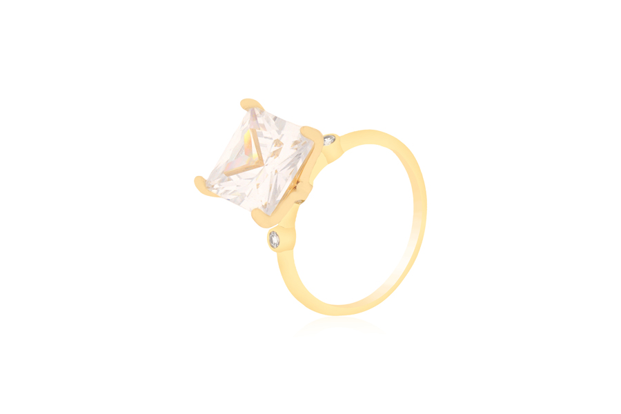 ANEL BANHADO EM OURO, SOLITÁRIO 10mm, ESTOQUE TRADICIONAL