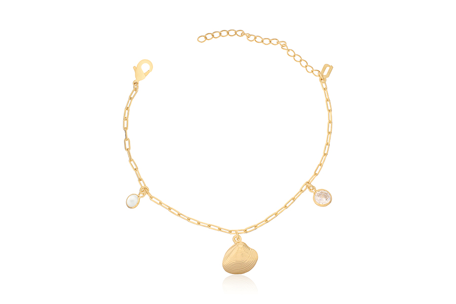 PULSEIRA BANHADA EM OURO, ELO PORTUGUÊS 2,50mm, 16cm COMPRIMENTO, PONTO DE LUZ 4,50mm E PINGENTE FÉ 11mm DIÂMETRO