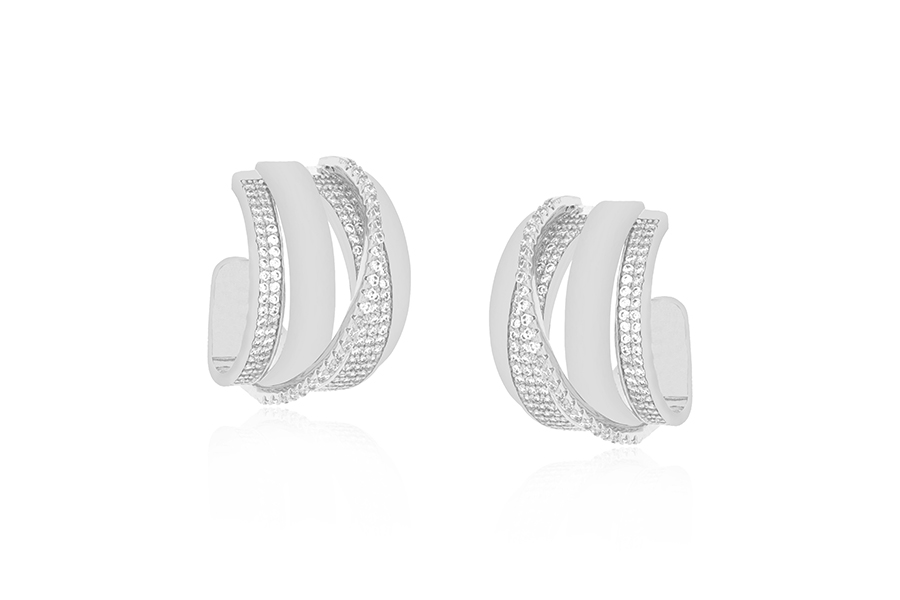 BRINCO EM PRATA, PONTO DE LUZ 5mm, CRAVAÇÃO INGLESA, COM BANHO DE RÓDIO BRANCO, COLEÇÃO AURA