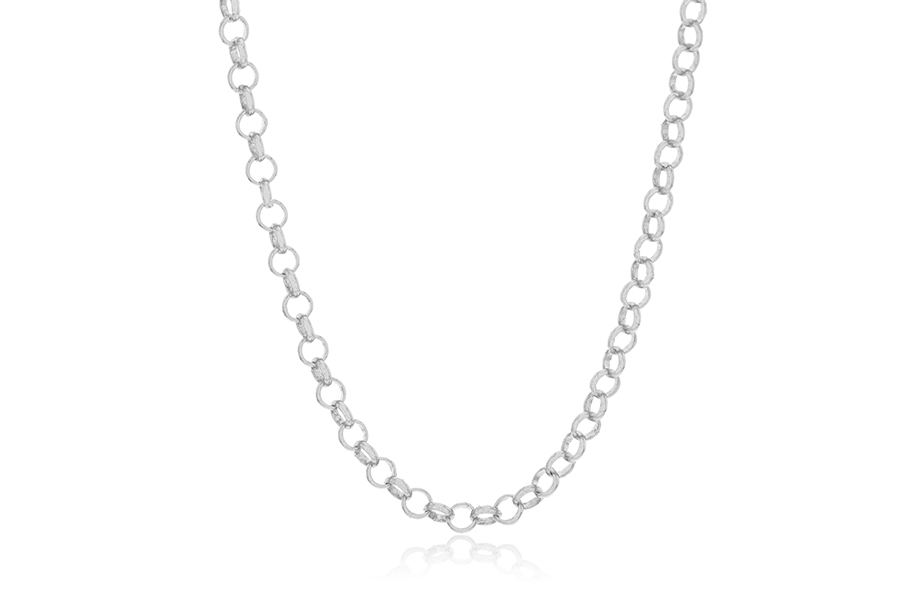 CORRENTE BANHADA EM PRATA LEVE, ELO LACRAIA LAMINADA 3mm, 43cm DE COMPRIMENTO, EXTENSOR 5cm COMPRIMENTO E PESO 6g