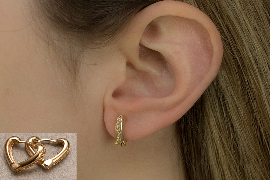 BRINCO BANHADO EM OURO, SOLITÁRIO 3,50mm DIÂMETRO COM TARRAXA BABY