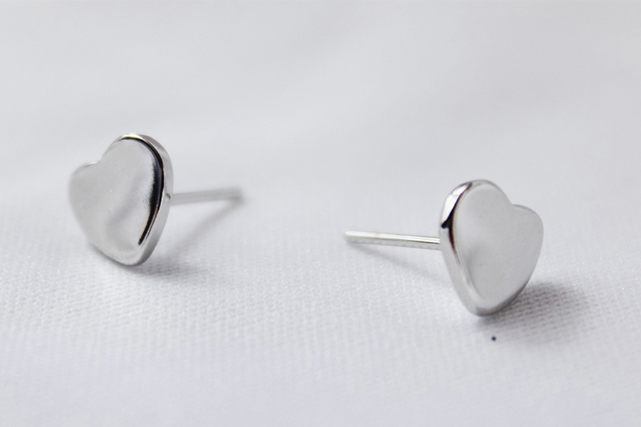 BRINCO EM PRATA, CORAÇÃO 10mm LARGURA, COM BANHO DE RÓDIO BRANCO, COLEÇÃO AURA