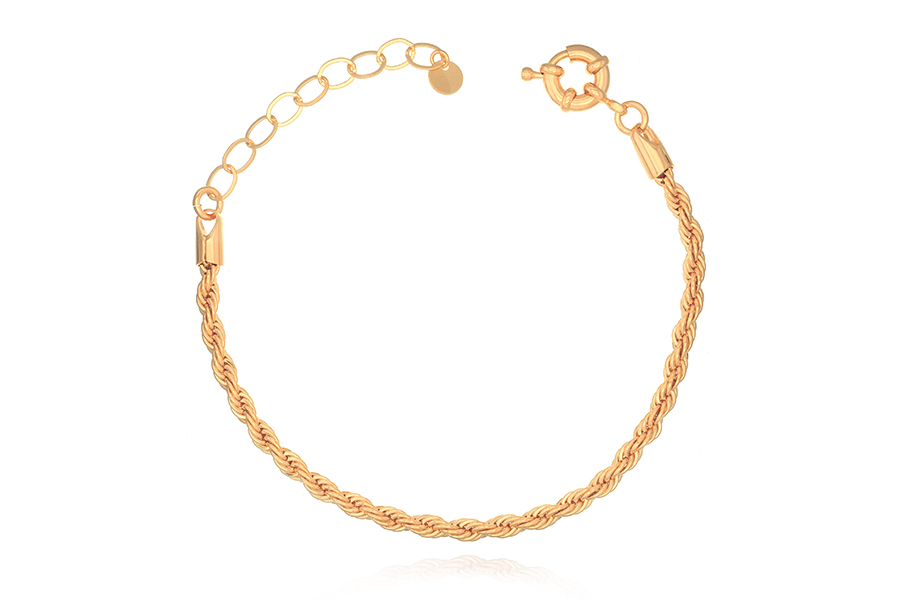 PULSEIRA BANHADA EM OURO, CORRENTE ELO PORTUGUÊS 5mm, 17cm COMPRIMENTO, EXTENSOR 5cm COMPRIMENTO E PESO 4,60g