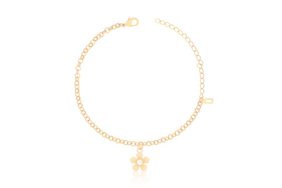 PULSEIRA INFANTIL BANHADA EM OURO, ELO 1,10mm COM BOLINHA, 14cm COMPRIMENTO, PONTO DE LUZ 3,50mm, AMOR DO PAPAI 10mm COM CORAÇÃO