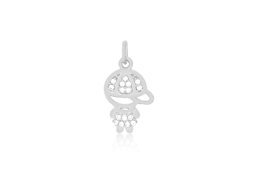 PINGENTE BANHADO EM PRATA LEVE, MENINO, 15mm ALTURA COM 16 ZIRCÔNIAS