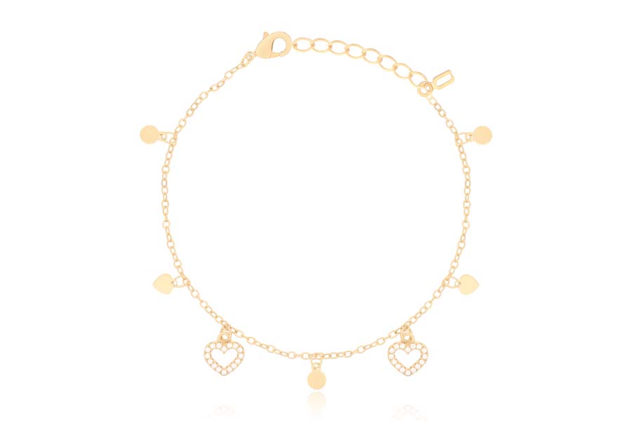 PULSEIRA INFANTIL BANHADA EM OURO, ELO 1,10mm COM BOLINHA, 14cm COMPRIMENTO, PONTO DE LUZ 3,50mm, AMOR DO PAPAI 10mm COM CORAÇÃO