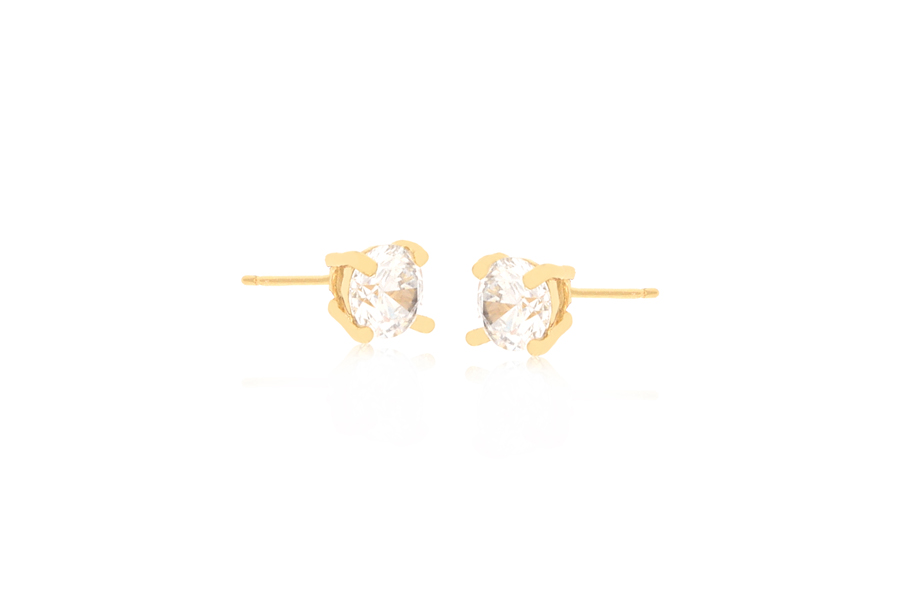BRINCO EM PRATA, PONTO DE LUZ 5mm, CRAVAÇÃO INGLESA, COM BANHO DE RÓDIO BRANCO, COLEÇÃO AURA