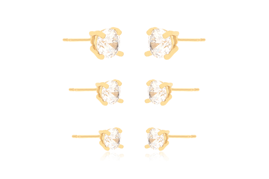 BRINCO BANHADO EM OURO, SOLITÁRIO 3,50mm DIÂMETRO COM TARRAXA BABY