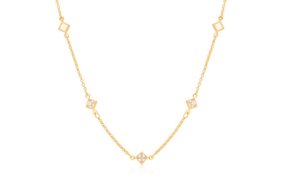 GARGANTILHA BANHADA EM OURO, ELO PORTUGUÊS 3mm, 40cm COMPRIMENTO, EXTENSOR 10cm COMPRIMENTO E PONTO DE LUZ 10mm